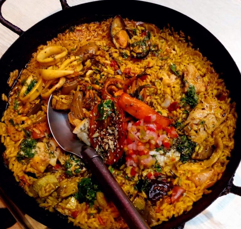 Miércoles: risotto de quínoa, morrón, cebolla, calabaza, garbanzo y almendras.